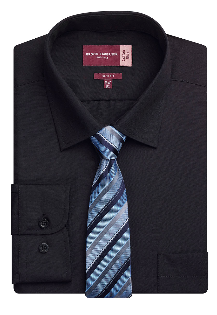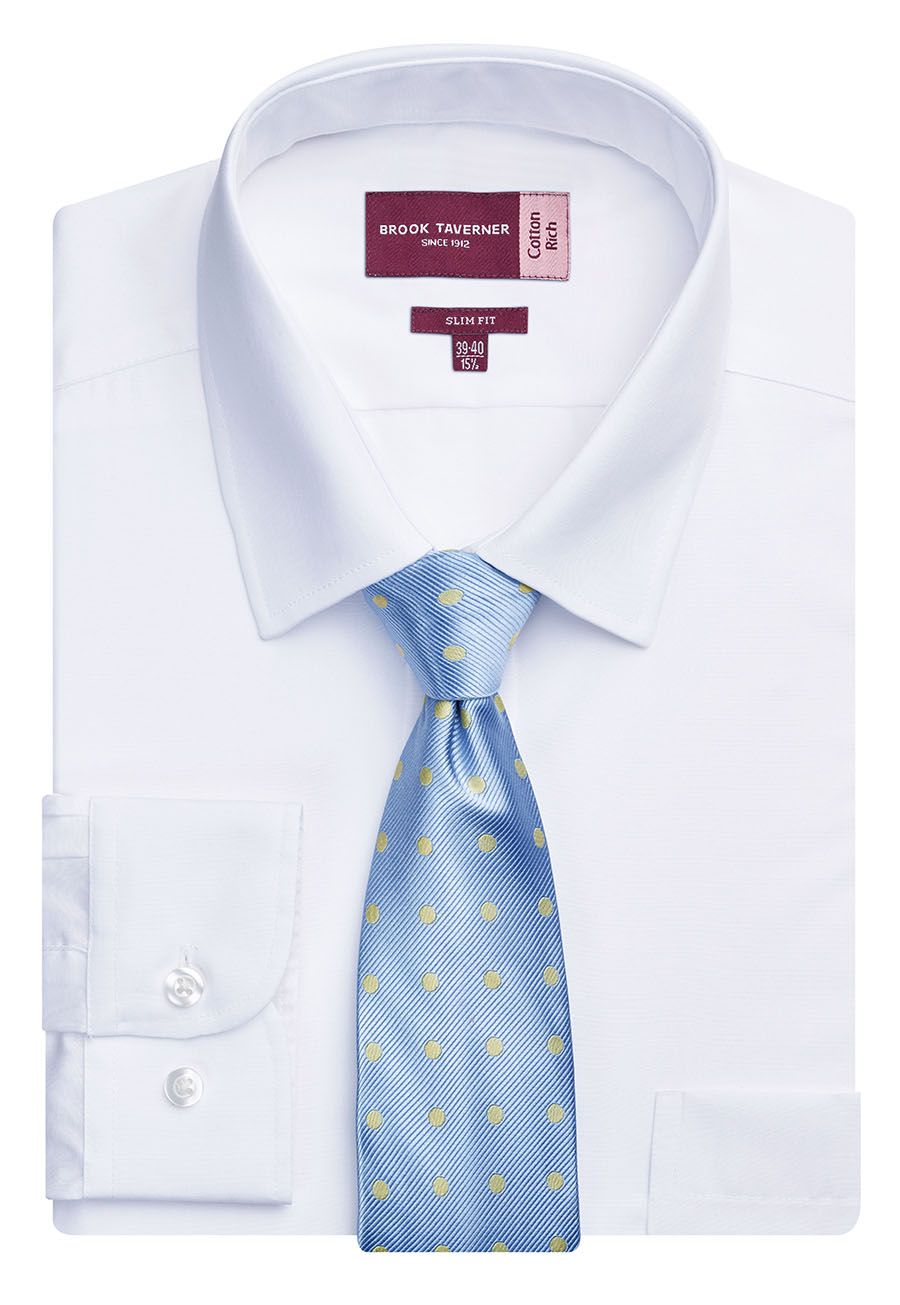 Easy-to-iron slim fit shirt. Effortlessly stylish, twin rear darts for a defined silhouette. Semi cutaway collar looks fantastic with or without a tie! Long sleeve, white only. Matches Rapino classic fit men's shirt. Machine Washable