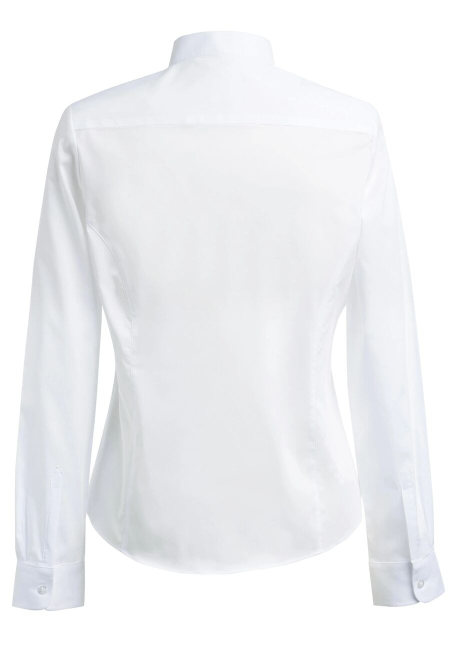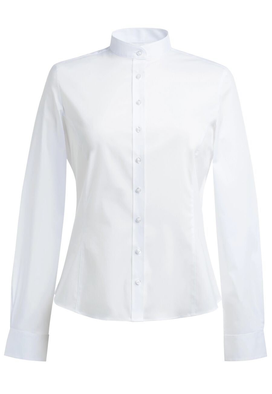 Grandad collar, semi-fitted, long sleeve, single cuff, princess seams.