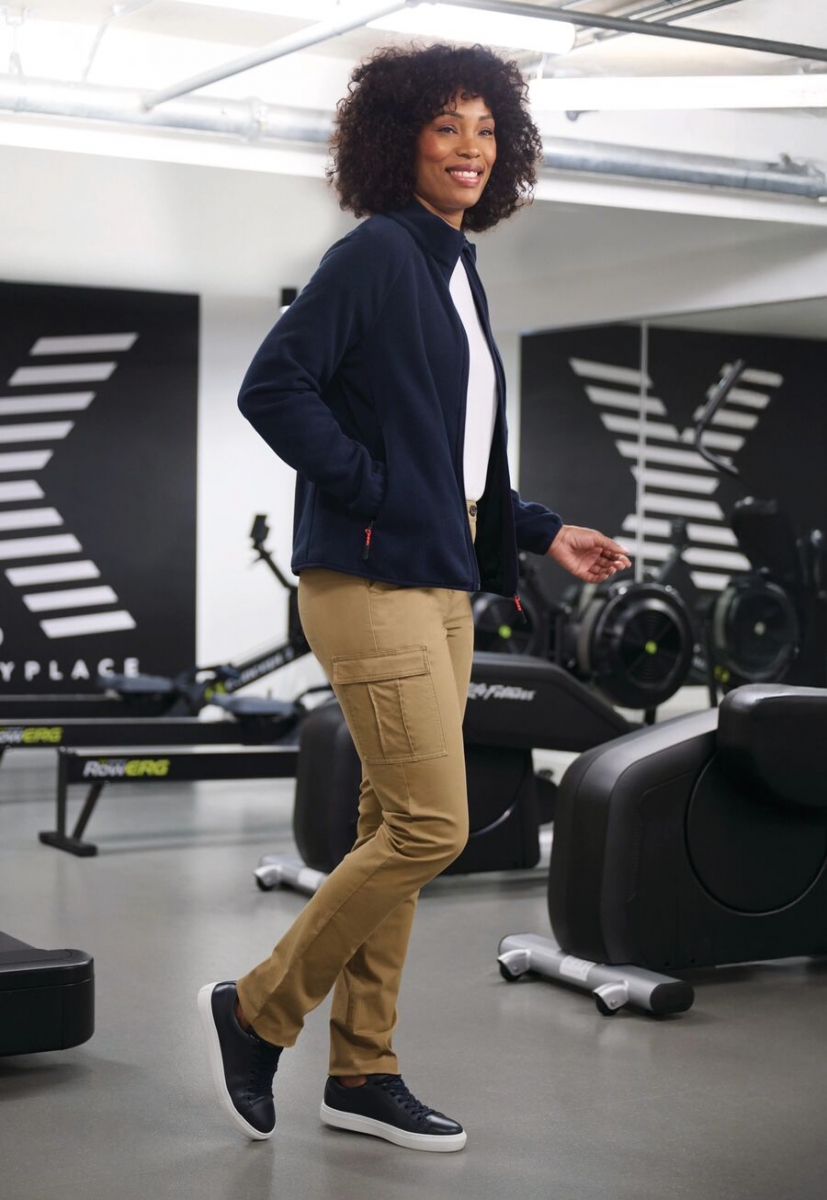 Slim leg, 2 cargo patch pockets, 2 side pockets, 2 rear jetted pockets, belt loops, button fastening. Half hem width at waist size 12R = 18cm