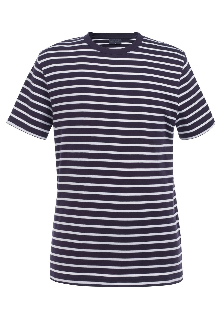 Short sleeve, ribbed neckline, twin needle stitching on hem and cuff.