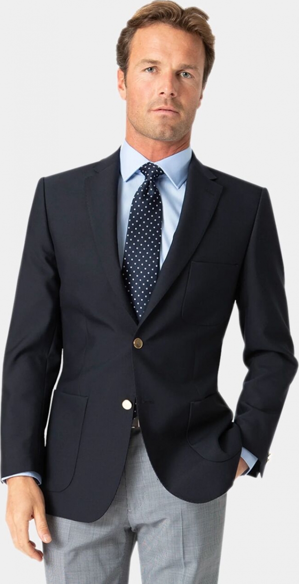 Club Blazer, single breasted, edge stitching, 2 button with side vents, patch pockets