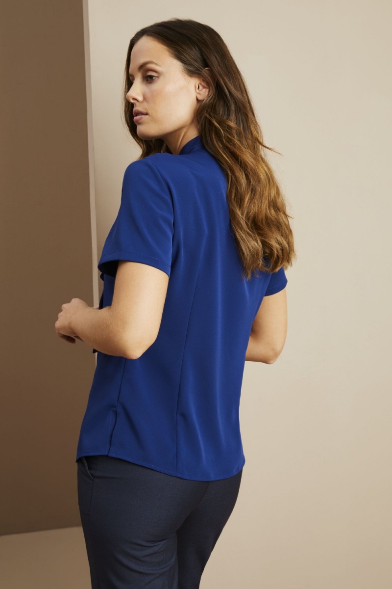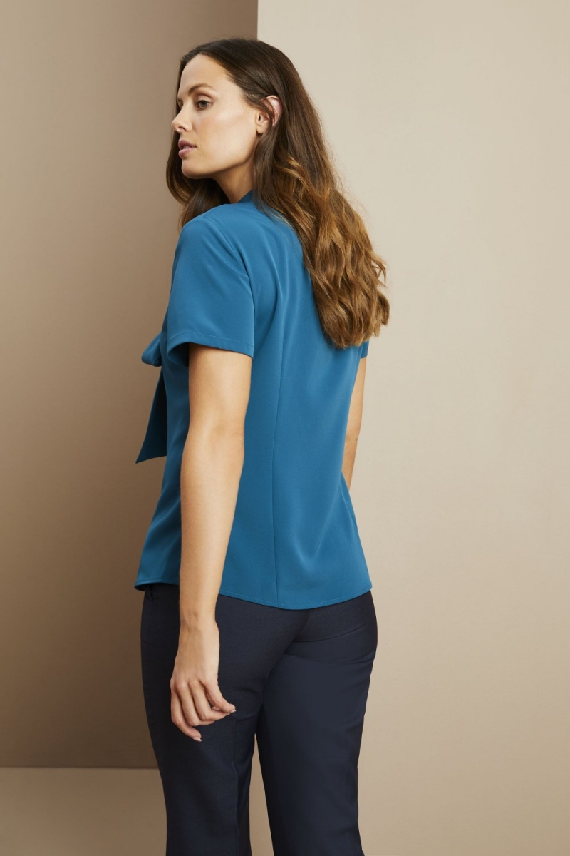 Make your uniform stand out from the crowd in our Low Tie Neck Button Through Blouse. Featuring capped sleeves, low self-tie bow and button fastenings to the front, creating a smart aesthetic perfect for various roles in a workplace. Made from easy-care fabric, this garment is low maintenance requiring minimum ironing.
