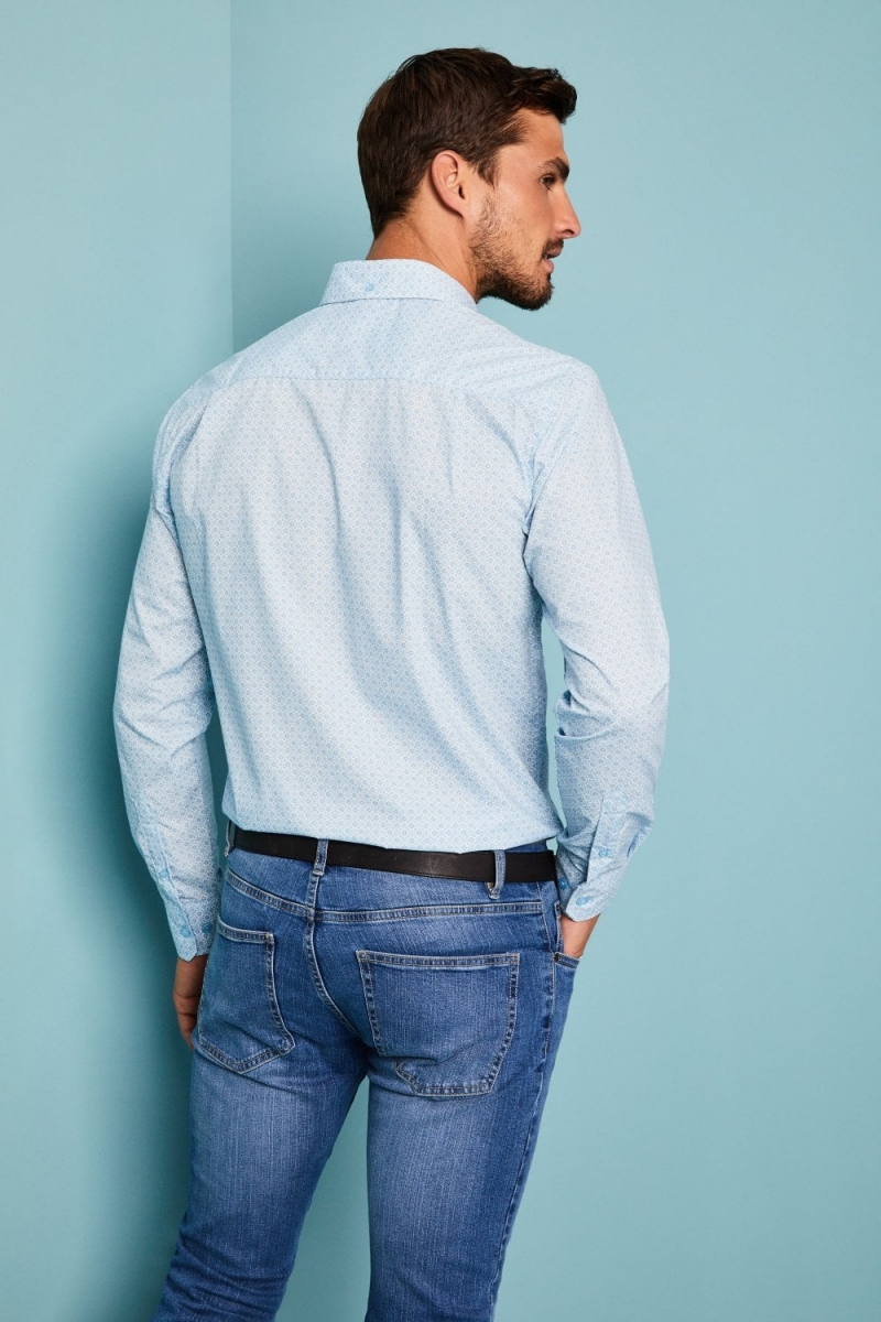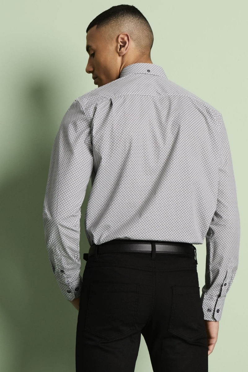 Introducing our Men's Patterned Shirt with black and white geometric pattern that make a bold statement to your workwear wardrobe. This woven semi-fitted shirt will add a touch of interest and style to your workwear attire and will suit you and every member of staff with its design.