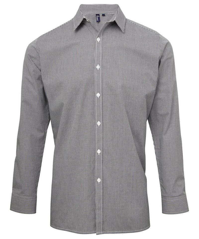 Microcheck Gingham long sleeve cotton shirt BlackWhite