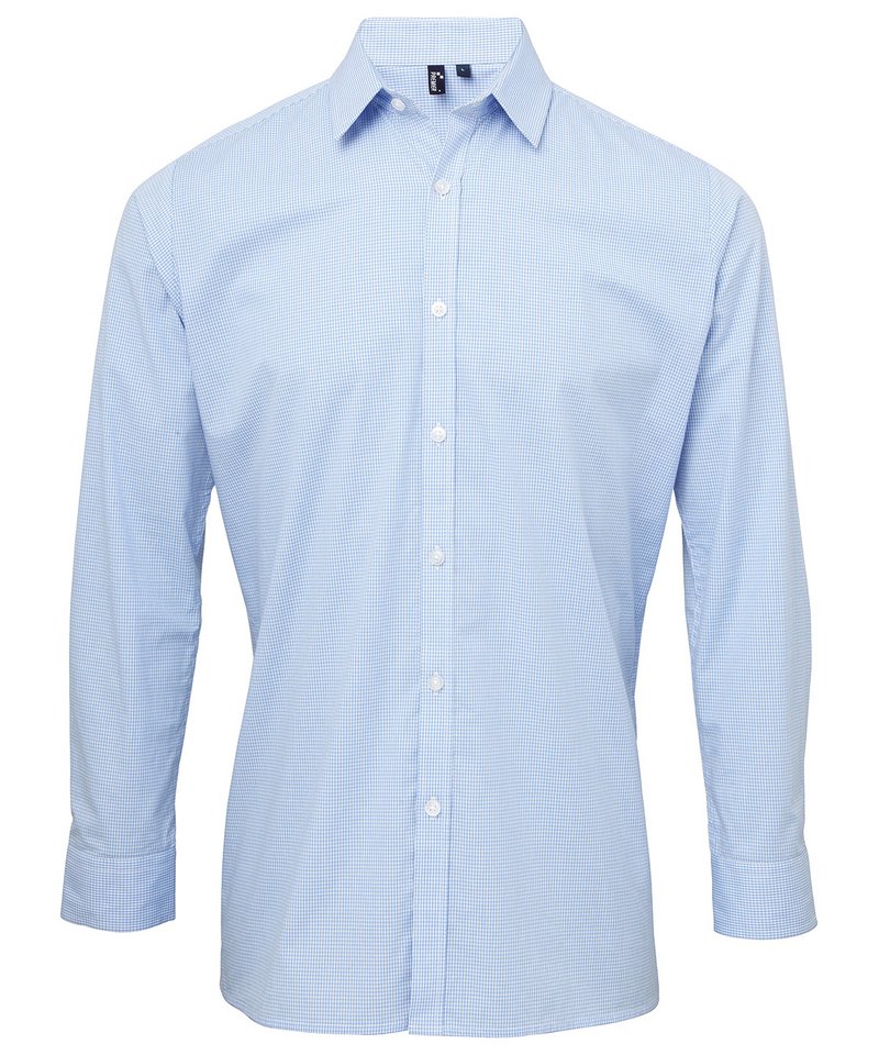Microcheck Gingham long sleeve cotton shirt Light BlueWhite