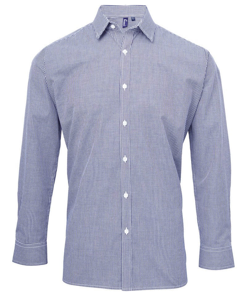 Microcheck Gingham long sleeve cotton shirt NavyWhite