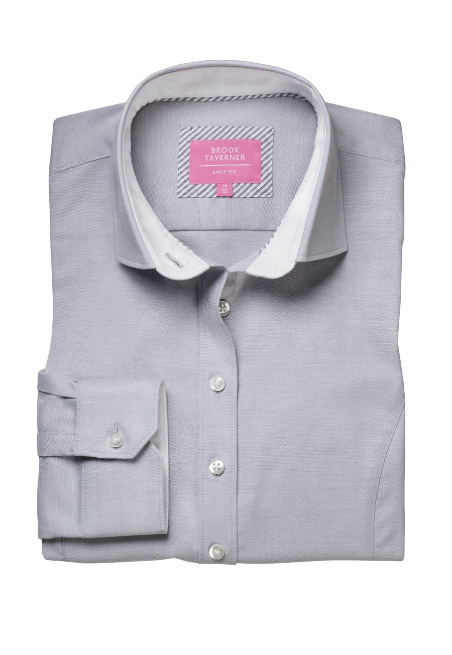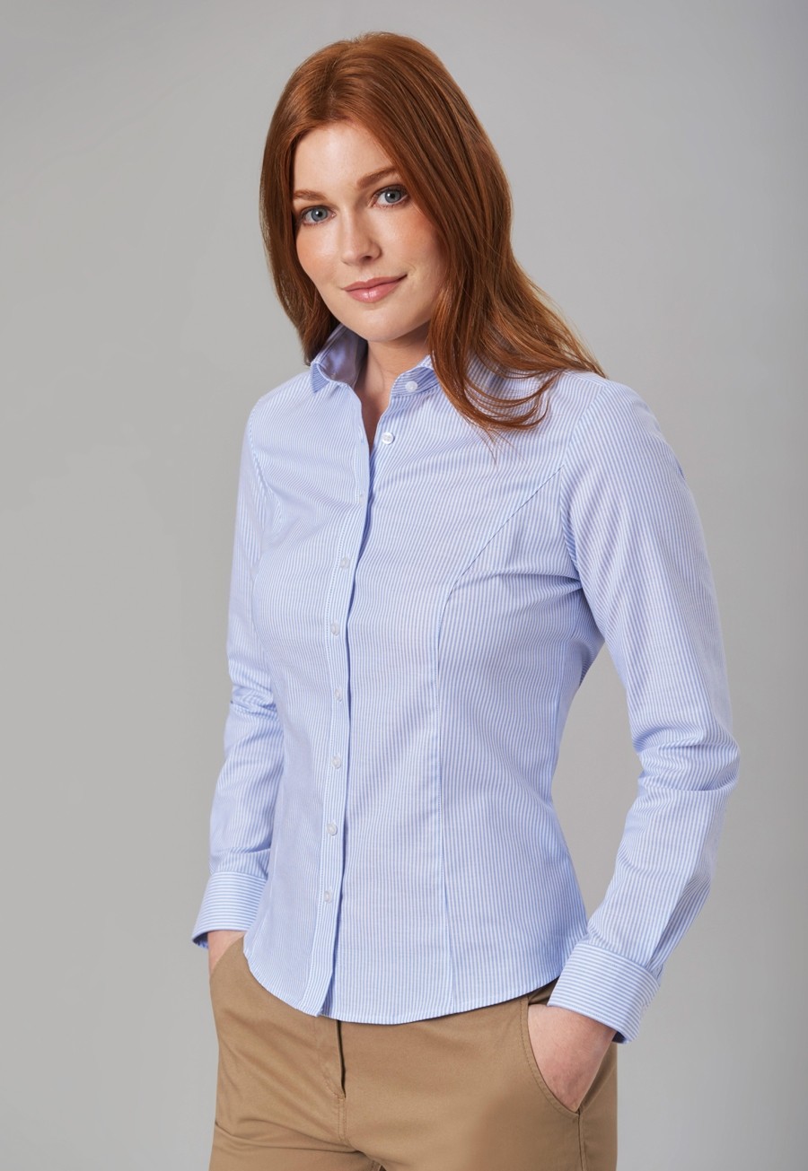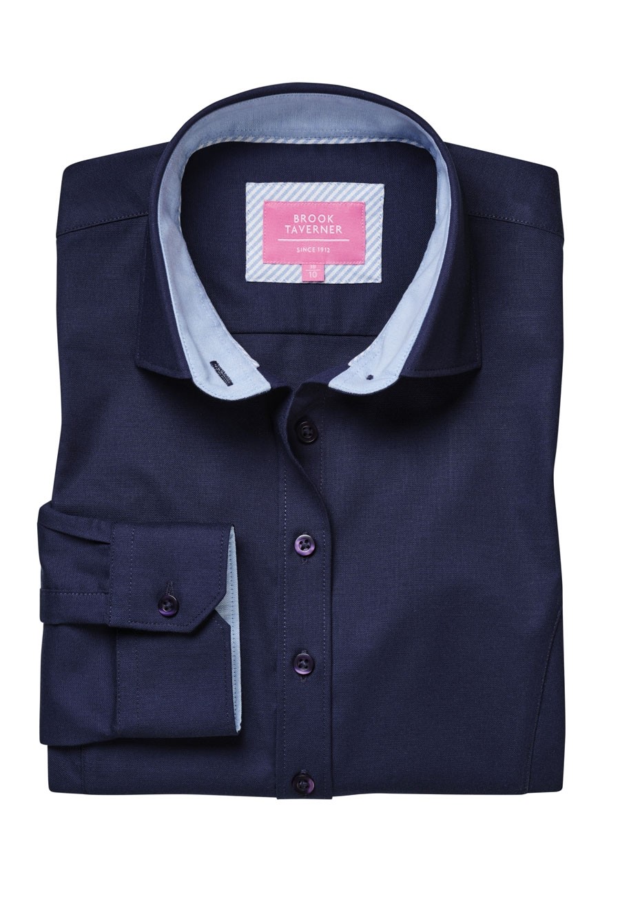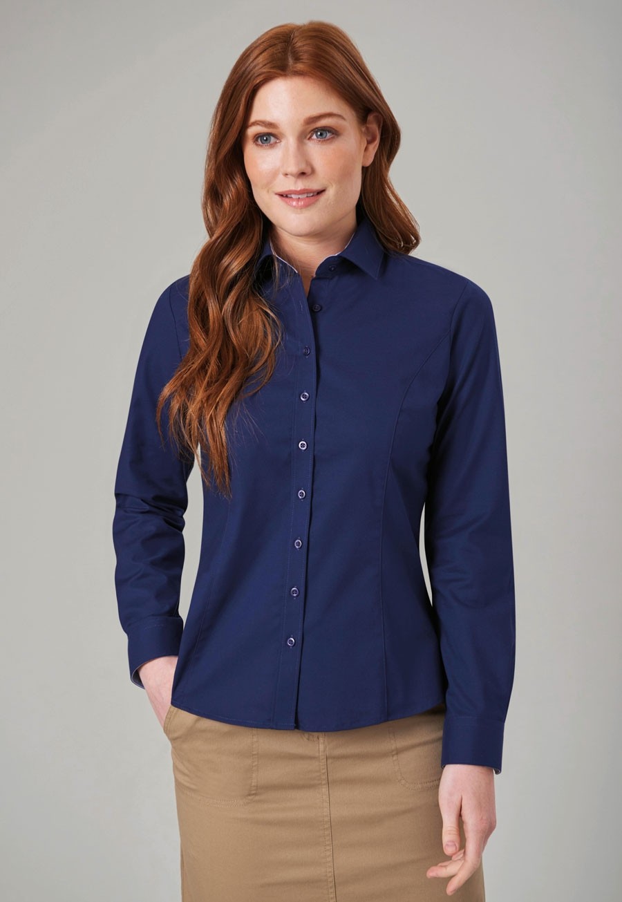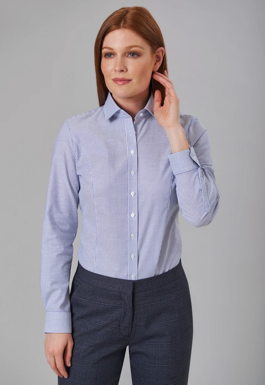 Tailored fit, long sleeve, cutaway collar, contrast collar.
