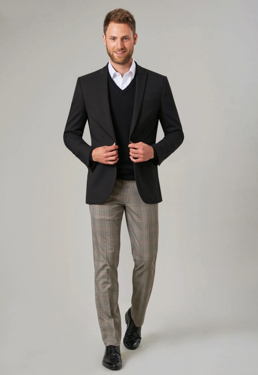 Slim fit, peaked lapel, 1 button, twin rear vents