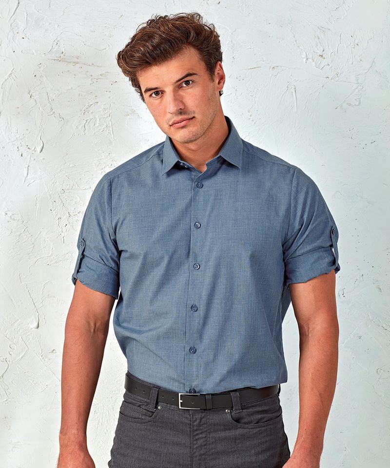 A great addition to the existing range of Poplin shirts from Premier, this men’s style is made with contrasting coloured yarns that are woven to create this horizontal and vertical cross effect. The shirt can be undone at the cuffs, rolled up neatly and secured in place by a tab and button on the upper arm, for a look that’s cool, casual and bang on trend.