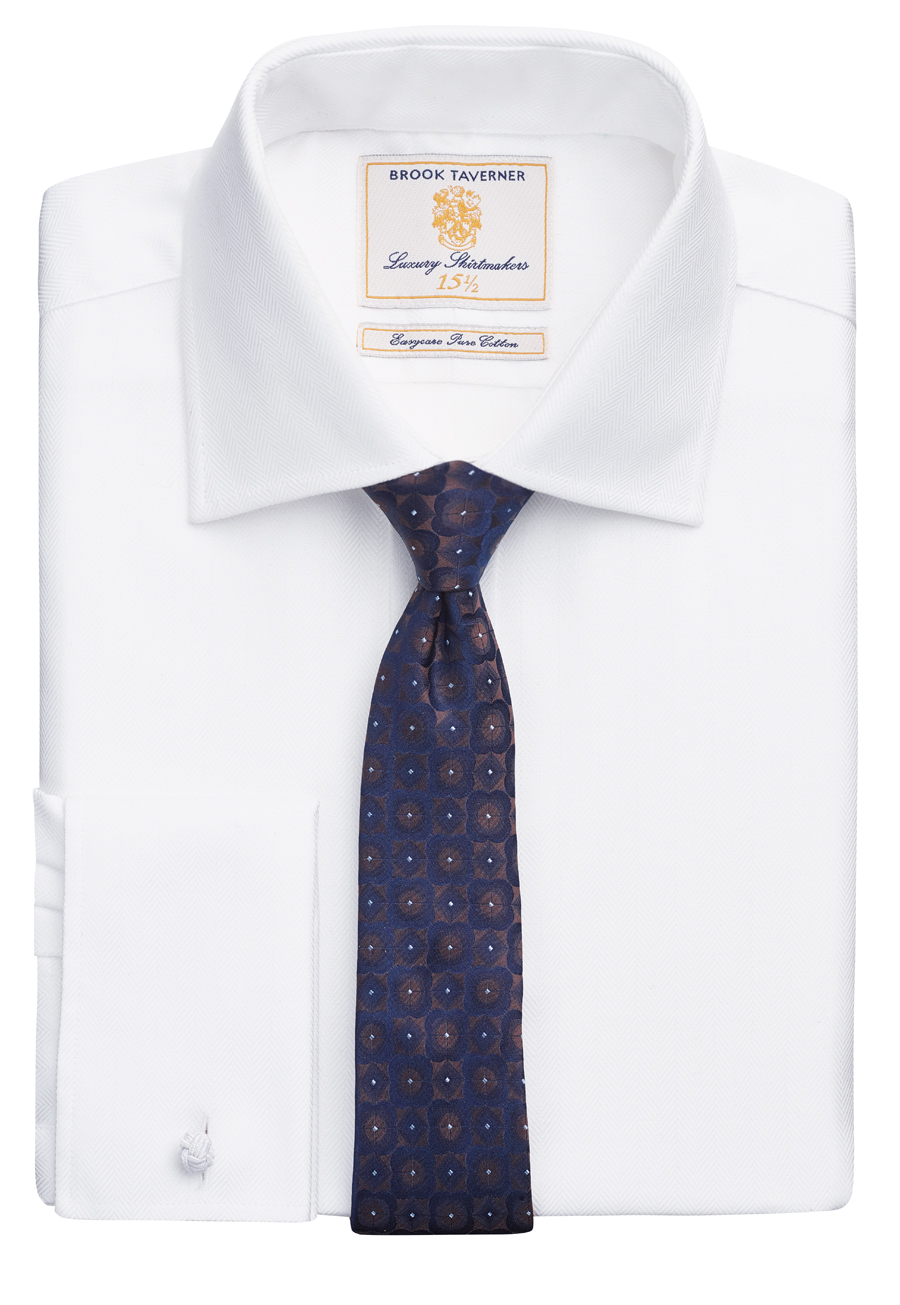 Tailored from a 100% superfine cotton, easy to iron fabric. Removable metal collar stiffeners, taped seams. Complimentary silk cuff knots. Machine Washable