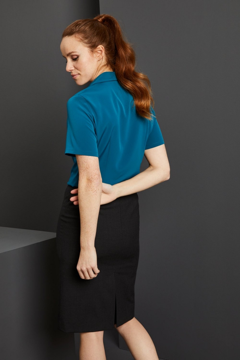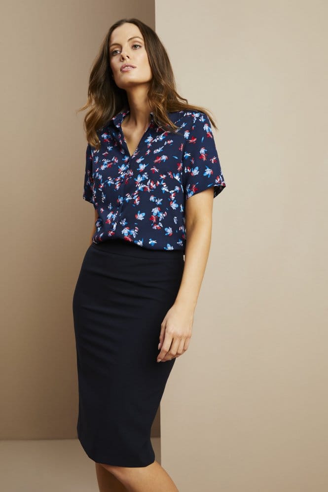 Our Open Collar Blouse is a sophisticated piece that will elevate any outfit. This blouse features a classic open collar and button fastenings. Cut in a semi-fitted blouse, it creates a comfortable fit and provides a completely feminine feel which flatters the body. This is an easy-care fabric, perfect for professionals with a busy schedule and requires minimum ironing. Manufactured in a soft fabric, our blouse feels light to wear and has great draping qualities.