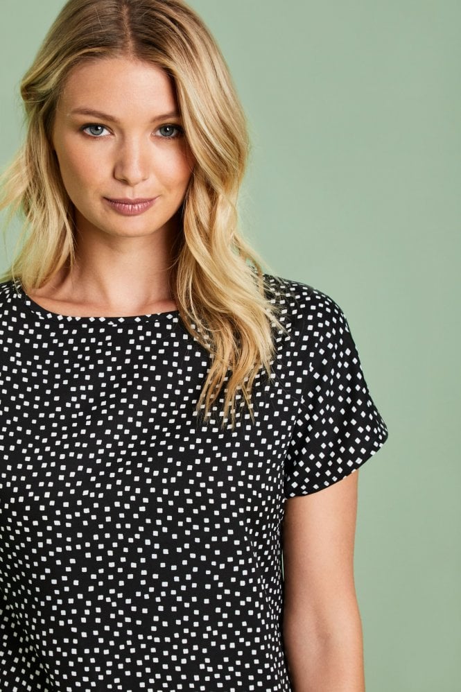 Short Sleeve Open Collar Blouse, Navy Ink Drop