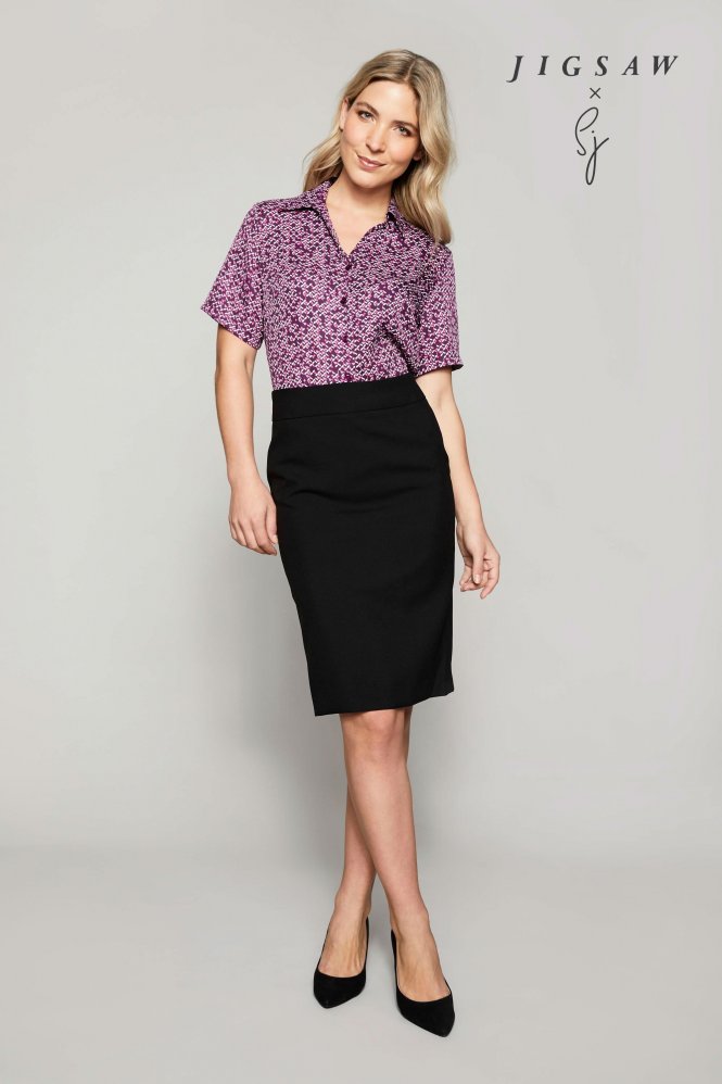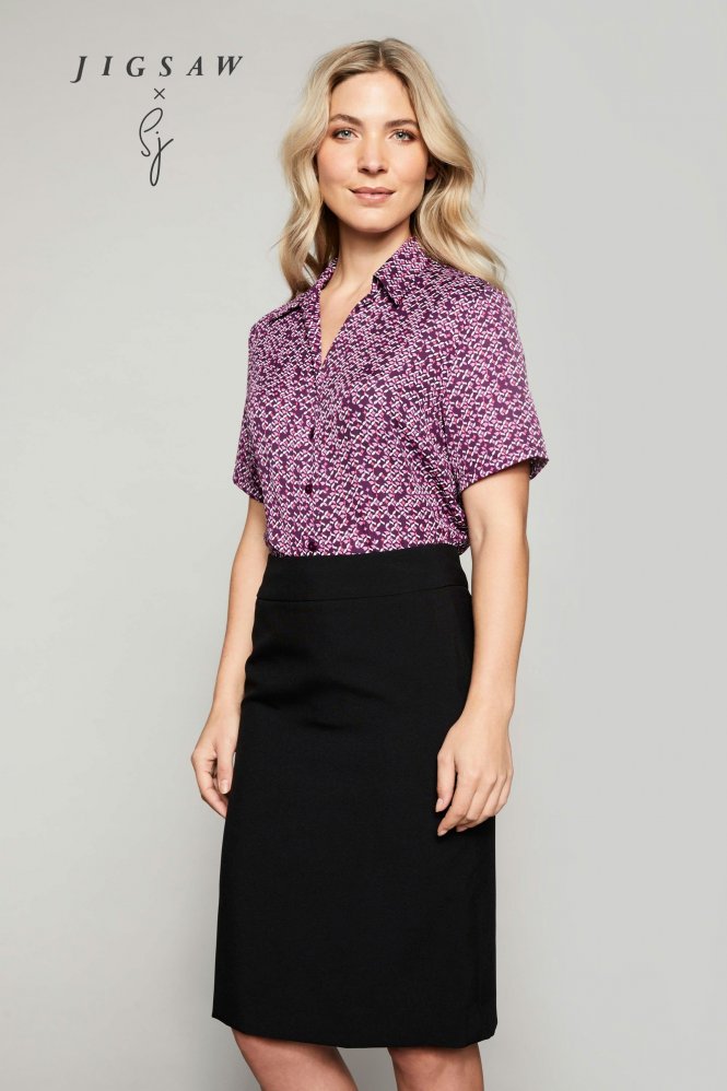 Update your workwear uniform with our new Short Sleeve Pleat Neck Black Blouse, now available in new colours & prints. It is lightweight, whilst remaining flattering this beautifully classic style that has been designed to stand the test of time. A wonderfully versatile blouse for a look that elevates your workwear attire. With minimum ironing and easy care fabric, be fashion-forward and make your uniform work for you with this staple garment.
