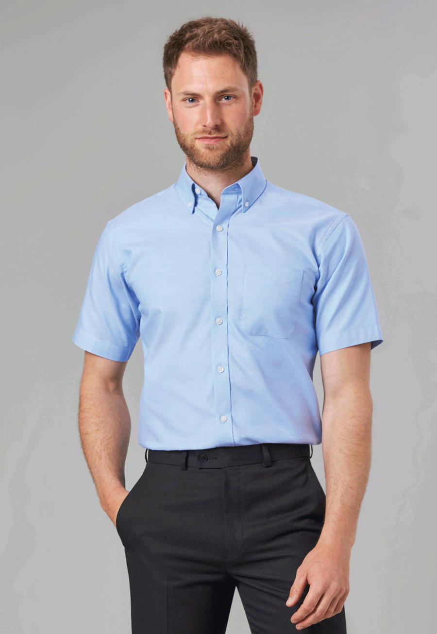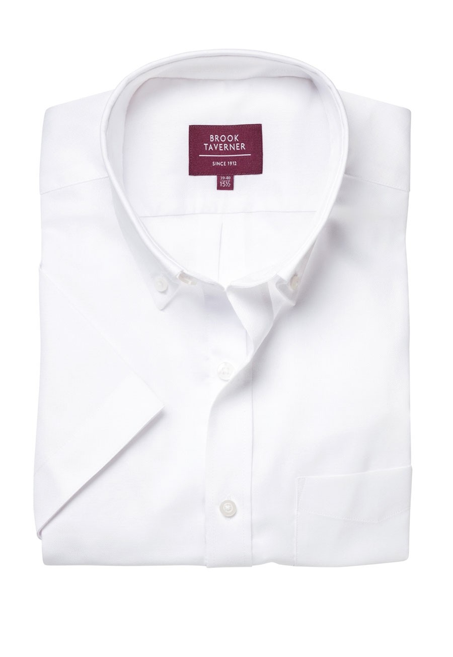 Tailored fit, short sleeve, button-down collar, box pleat, chest pocket.