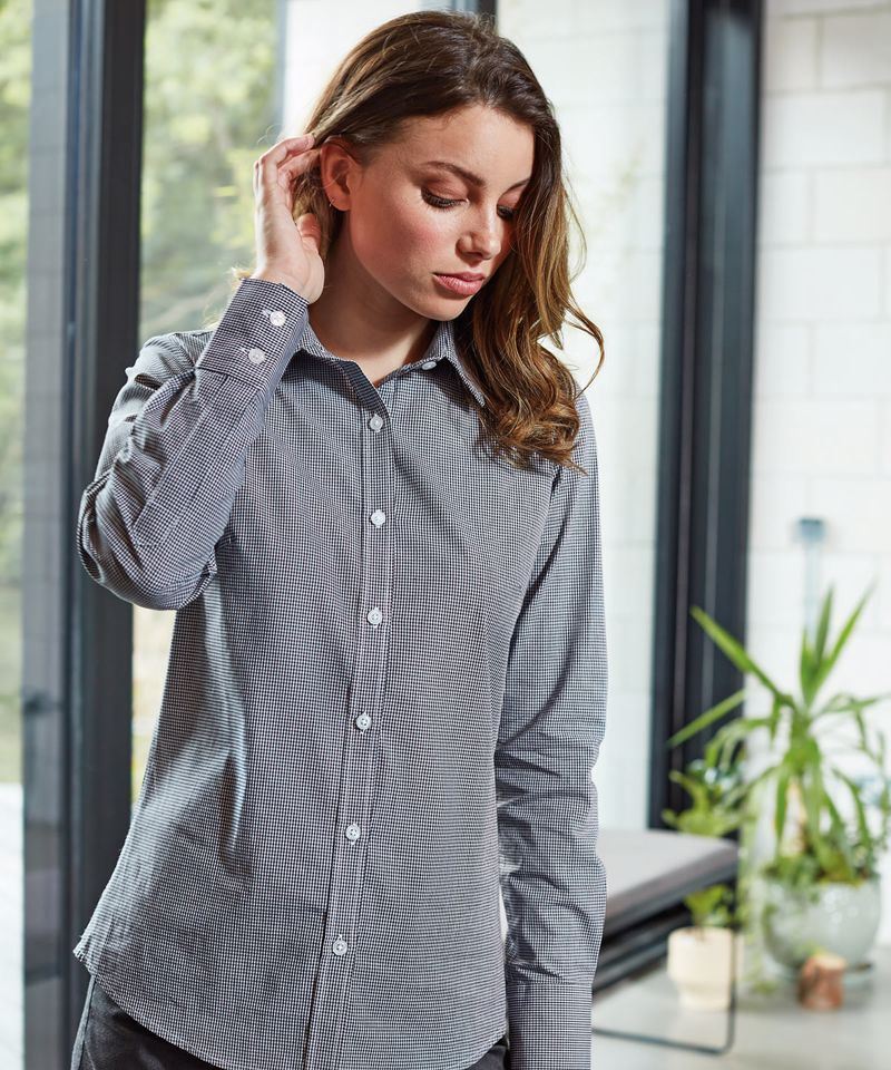 A welcome addition to the existing range of long sleeved ladies’ blouses from Premier, this style reflects the latest corporate styles worn on the office floor. The Gingham print, along with soft collar styling offers a more casual approach to workwear, but the buttoned collar and cuffs ensure that this is still a smart choice for business professionals. Made with 100% cotton for a soft and comfortable blouse that is available in four popular colourways.