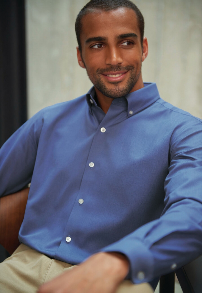 Coupe ajustée, button down collar, patte française, contrasté detailing