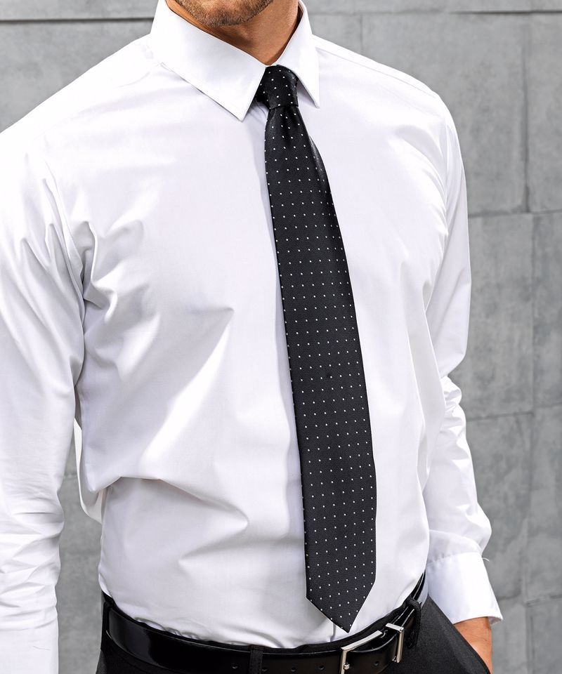Une cravate pleine longueur avec un motif à micro pois tendance. Deux fils de couleur sont tissés ensemble pour créer une cravate à effet de contraste qui ira bien avec vos chemises de travail de tous les jours.< /p>