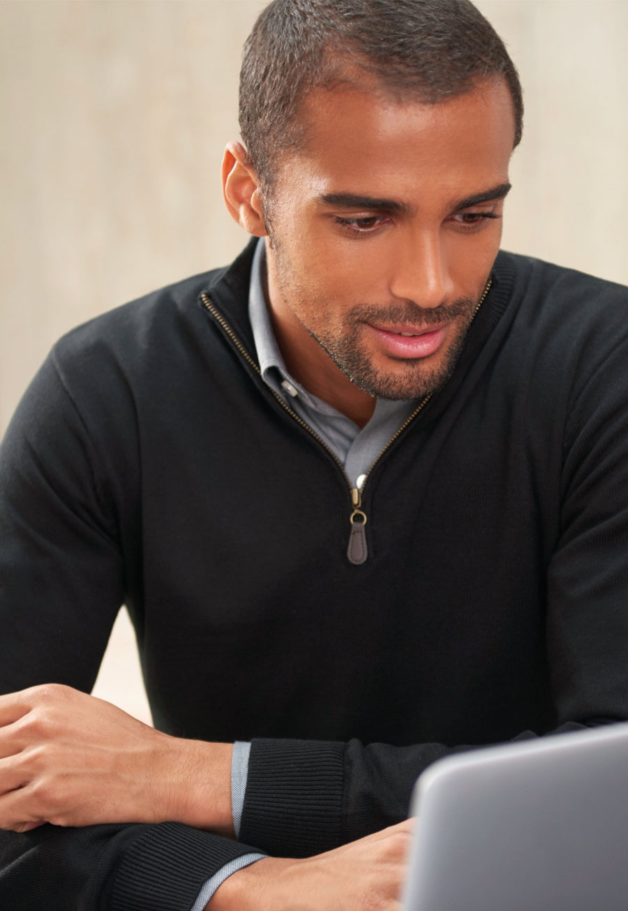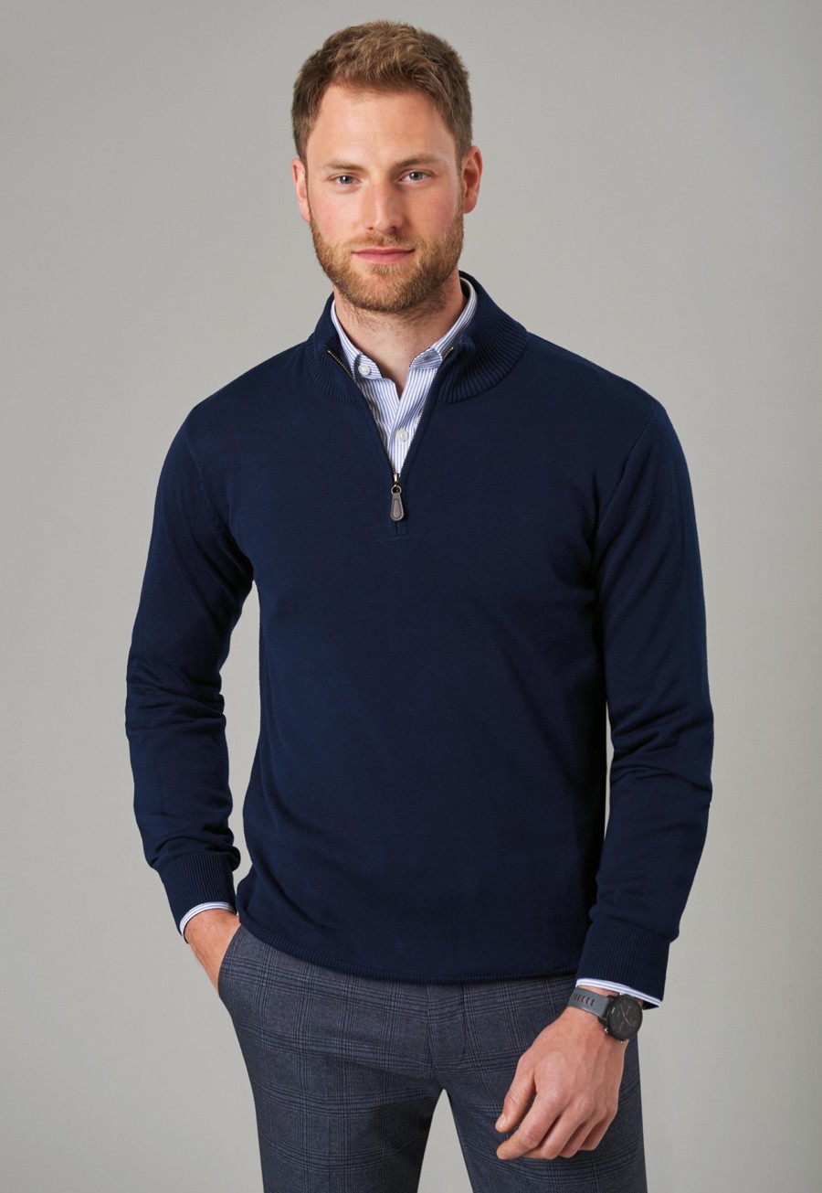 Pull 1/4 zip, tirette zippée en similicuir, col, poignets et ourlet côtelés, contraste lavable en machine