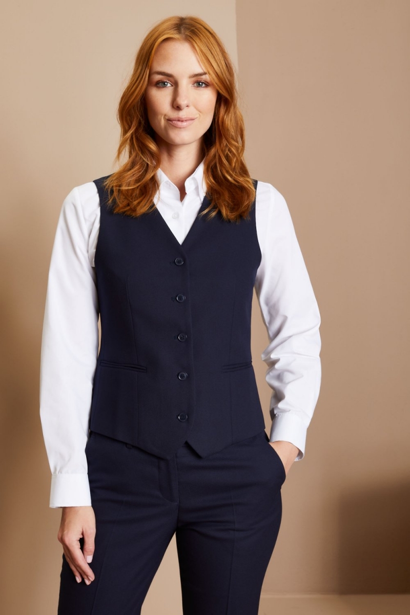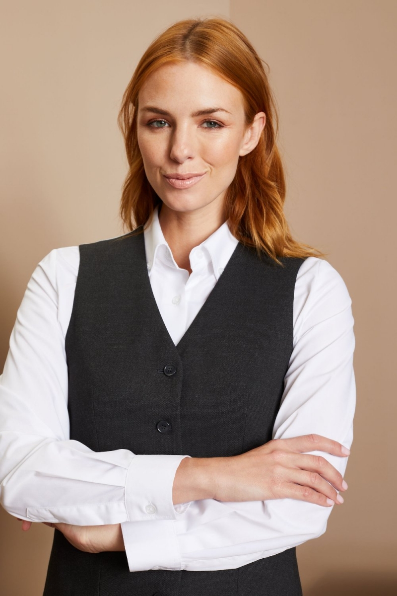 Fabriqué à partir de notre dernier tissu qui combine 66% de polyester, 33% de viscose, 1% de Lycra avec teflon et teinture résistant aux taches. Ce Waistcoat Femme est à la fois audacieux dans le style et la durabilité. Le complément de notre collection de créations contemporaines se sépare pour créer un look élégant et moderne sur le lieu de travail. Avec un Teflon & reg; Revêtement, ce vêtement verra et ressentira un excellent lavage après le lavage.