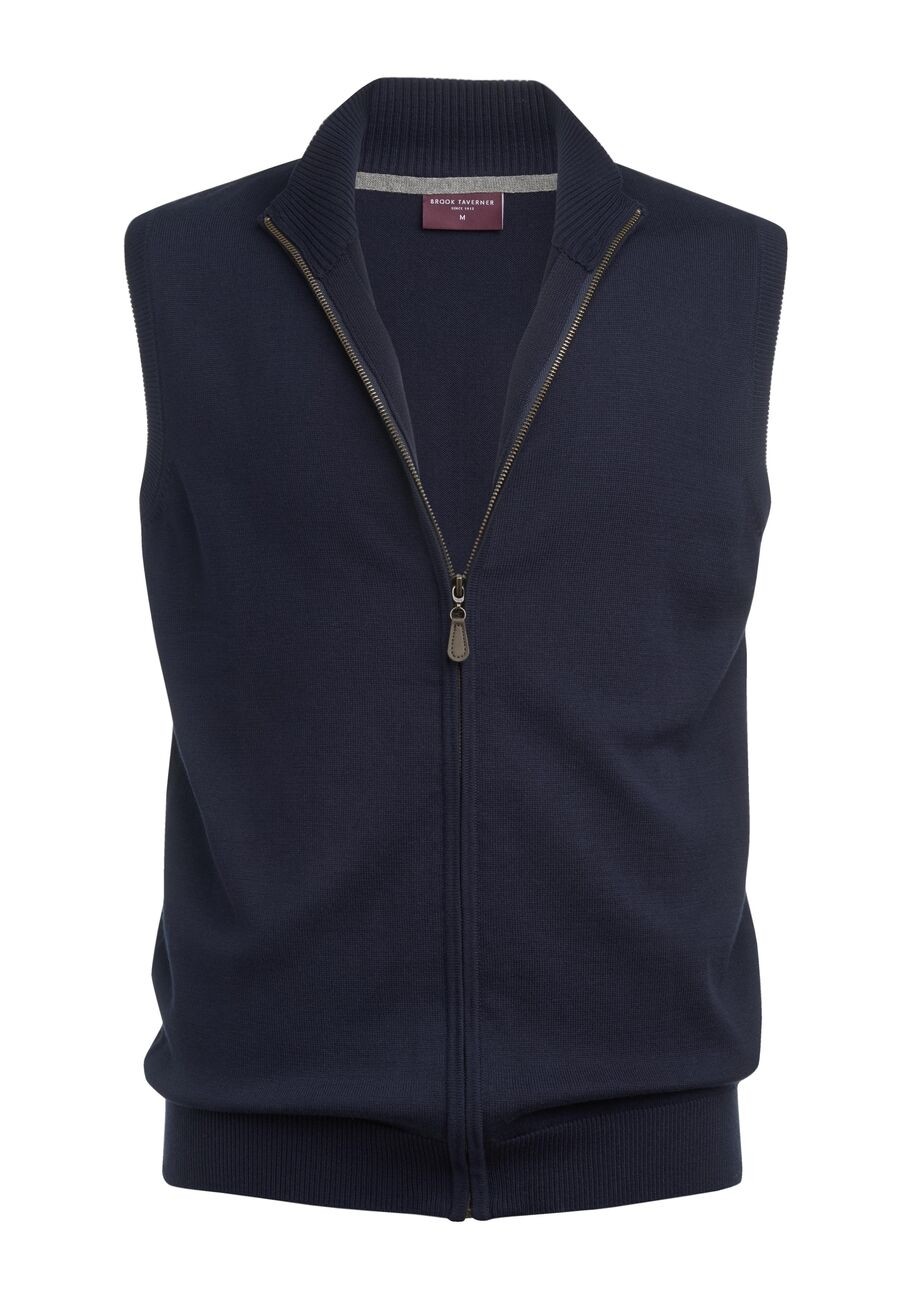 Cardigan sans manches, fermeture éclair sur toute la longueur, fermeture éclair en laiton avec tirette en simili cuir, col, poignets et ourlet côtelés.