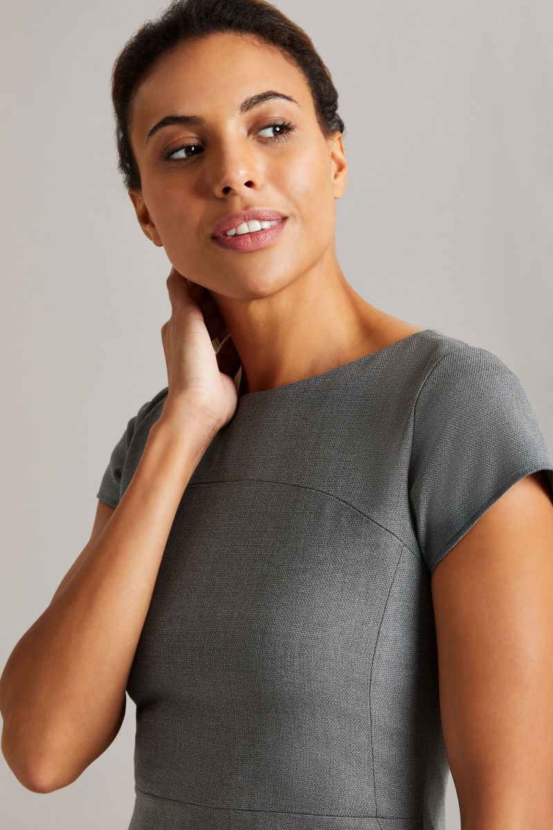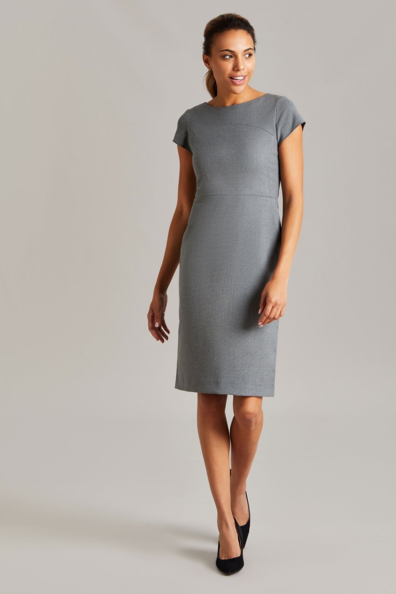 Fabriqué à partir de notre dernier tissu qui combine 66% de polyester, 33% de viscose, 1% de lycra avec Teflon® résistant aux taches. Choisissez cette élégante et élégante robe en décolleté oblique avec des manches étanches et des coutures flatteuses pour se faufiler et les côtés pour une définition flatteuse dans le lieu de travail.