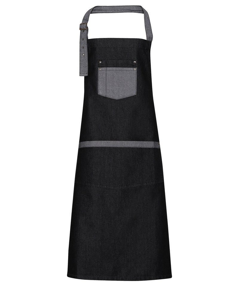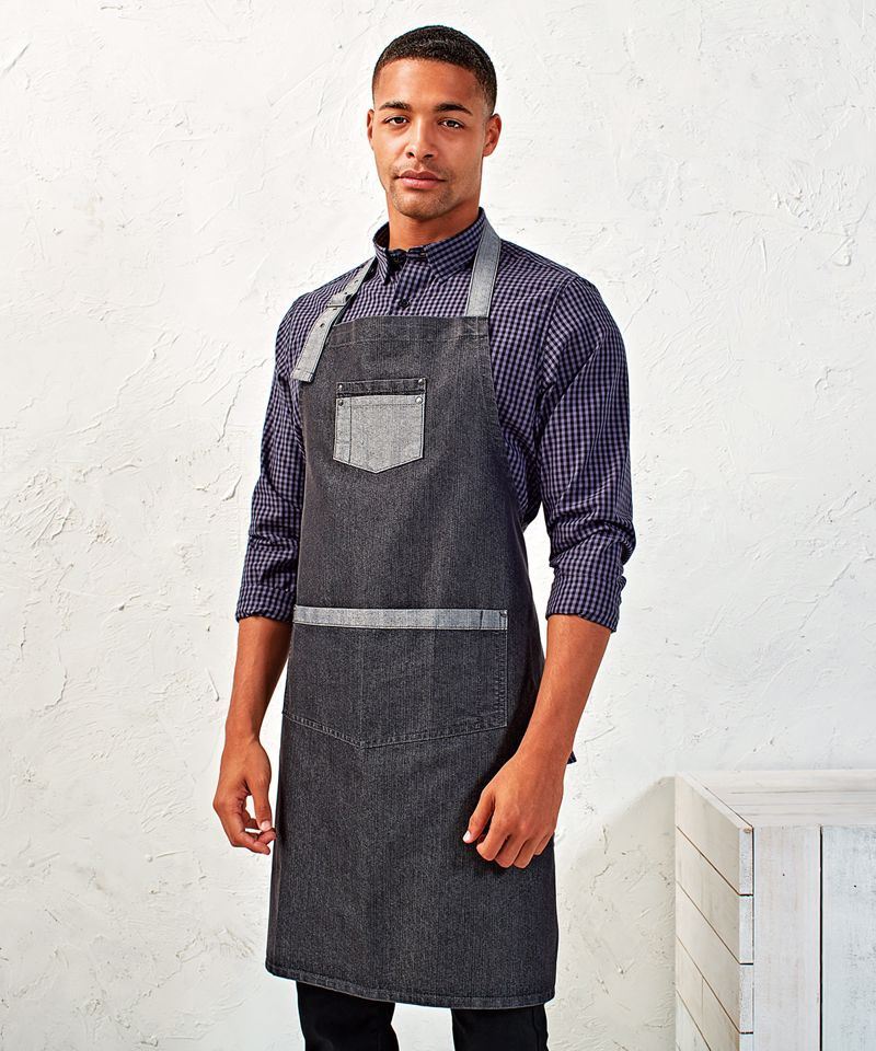 Un ajout original à la gamme de denim, ce tablier à bavette donne une sensation 'industrial-chic' au service avec de grands œillets en métal qui fixent les liens dans L'abat-jour sur le dessous forme le détail de garniture contrastée sur la poche et les liens pour un grand effet réversible.