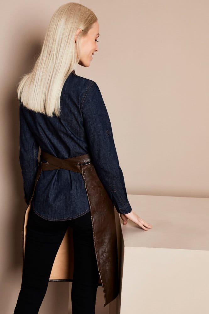 Ajoutez une déclaration à votre uniforme de personnel d'accueil avec ce tablier à bavette en similicuir Premier. Non seulement il a fière allure mais il est pratique avec une grande poche plaquée et des propriétés hydrofuges. Ce tablier a une boucle en laiton antique sur le tour de cou, ce qui rend la sangle réglable pour convenir à chaque membre du personnel.
