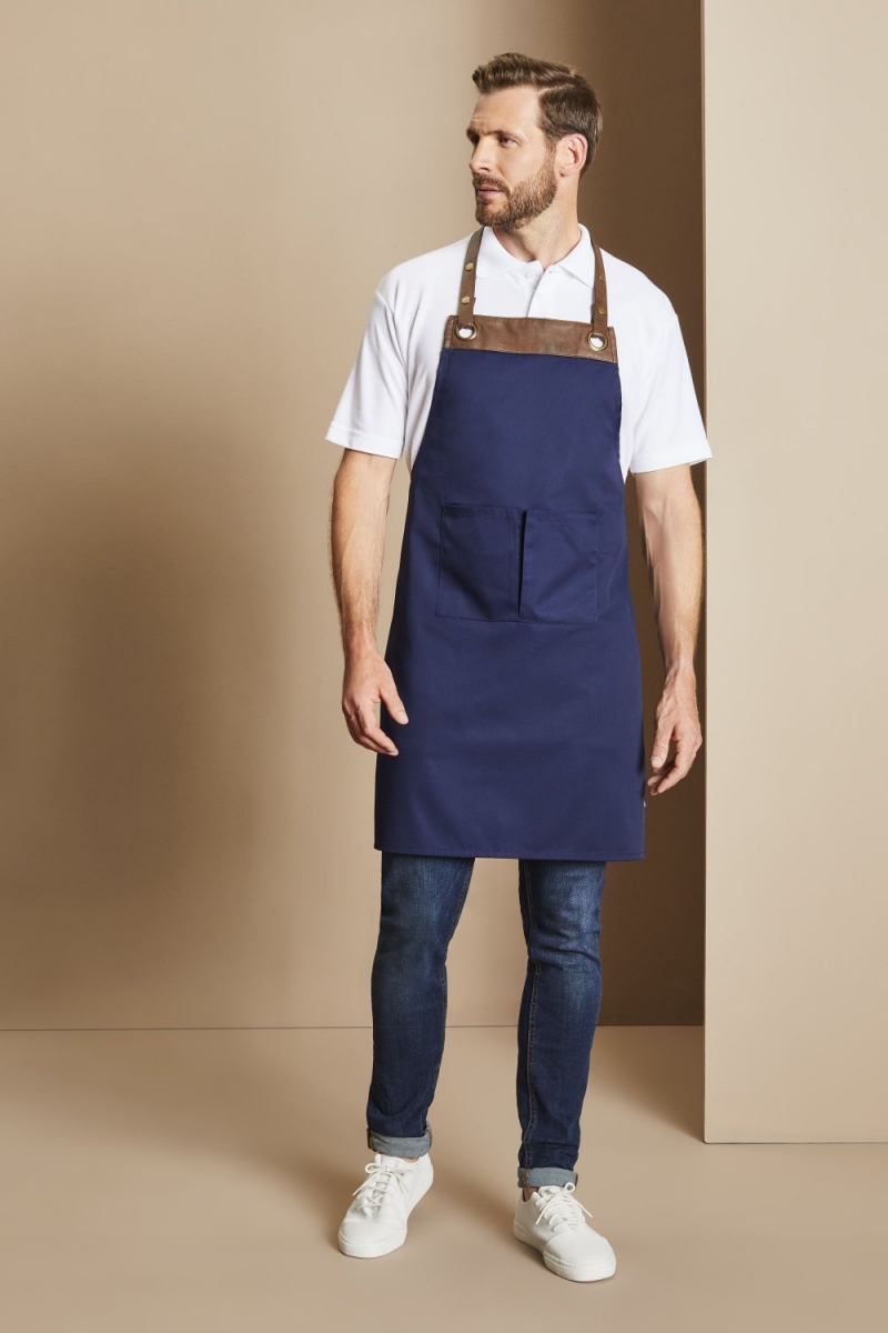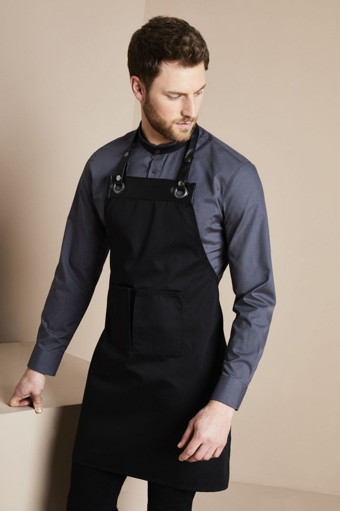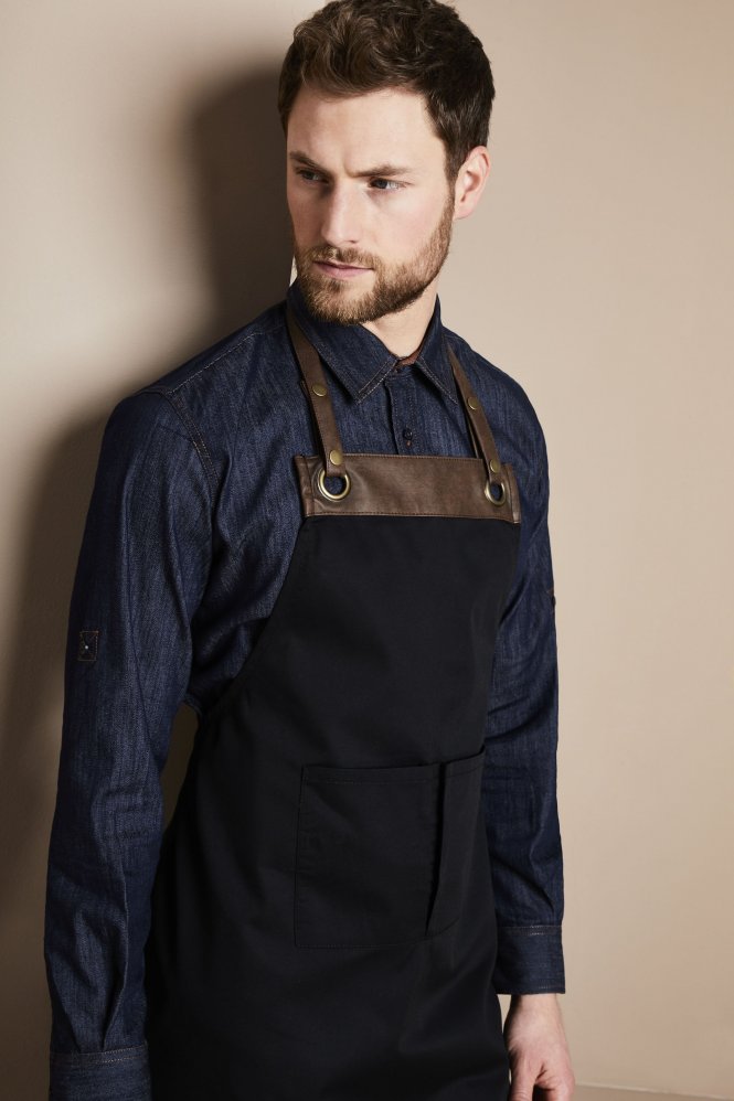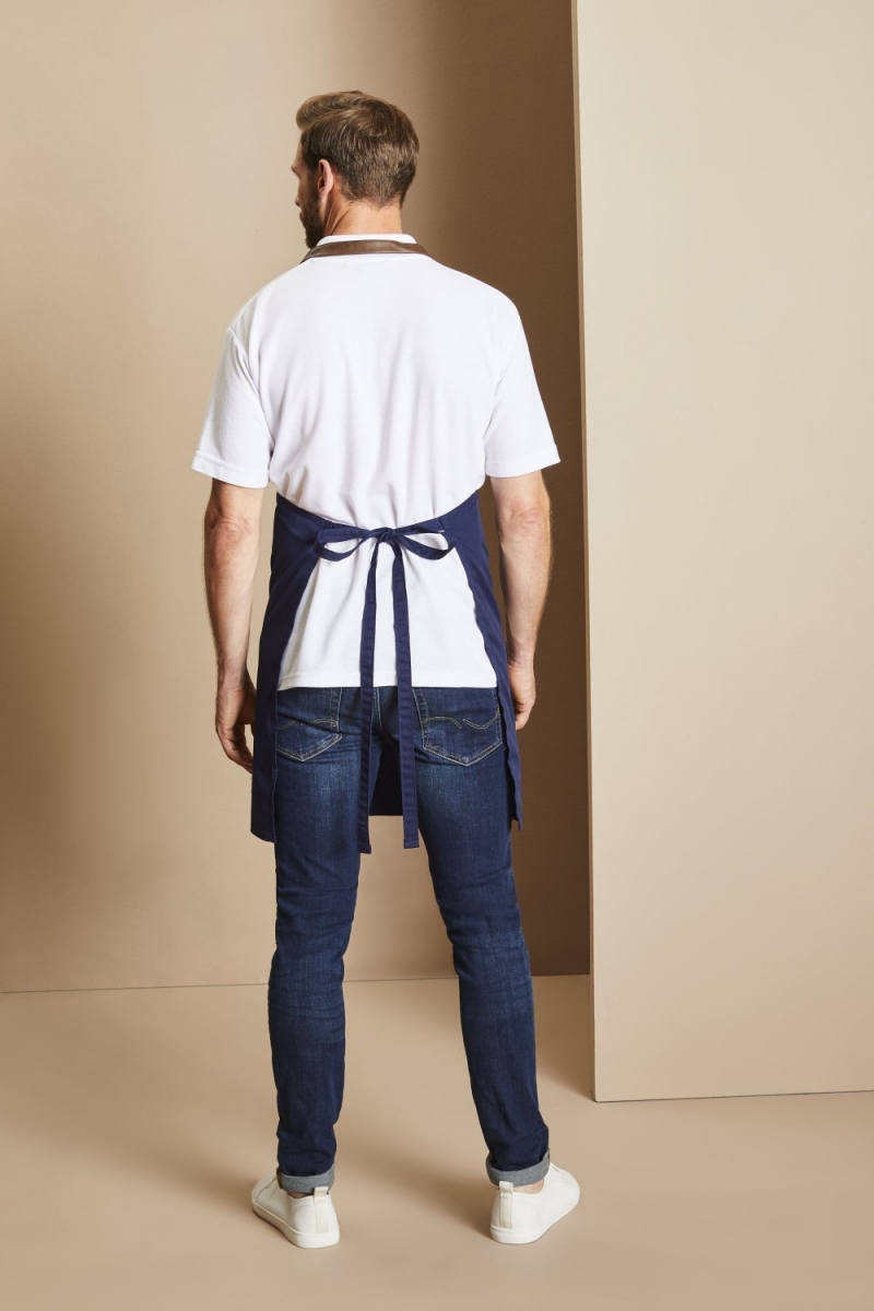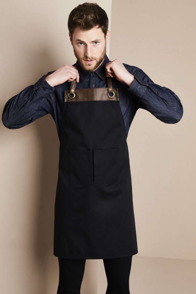 Donnez à votre équipe avant et arrière de la maison un look contemporain avec ce tablier à bavette Premier Espresso. Fabriqué en polyester-coton avec une garniture en similicuir, le tour de cou réglable est fixé à travers les œillets avec deux boutons-pression.