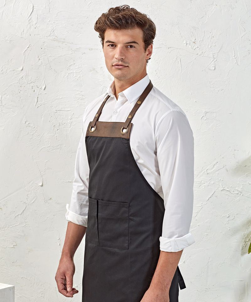 Ce tablier combine du polyester-coton avec du similicuir doux pour un design contemporain vraiment cool.