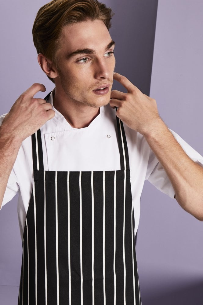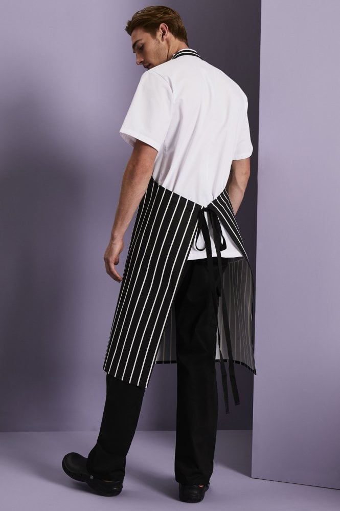 Un tablier à rayures traditionnel, ce qui en fait le tablier de restauration idéal et la solution de vêtements de travail pratique pour votre uniforme.
