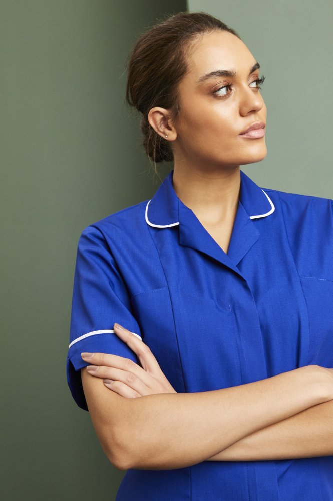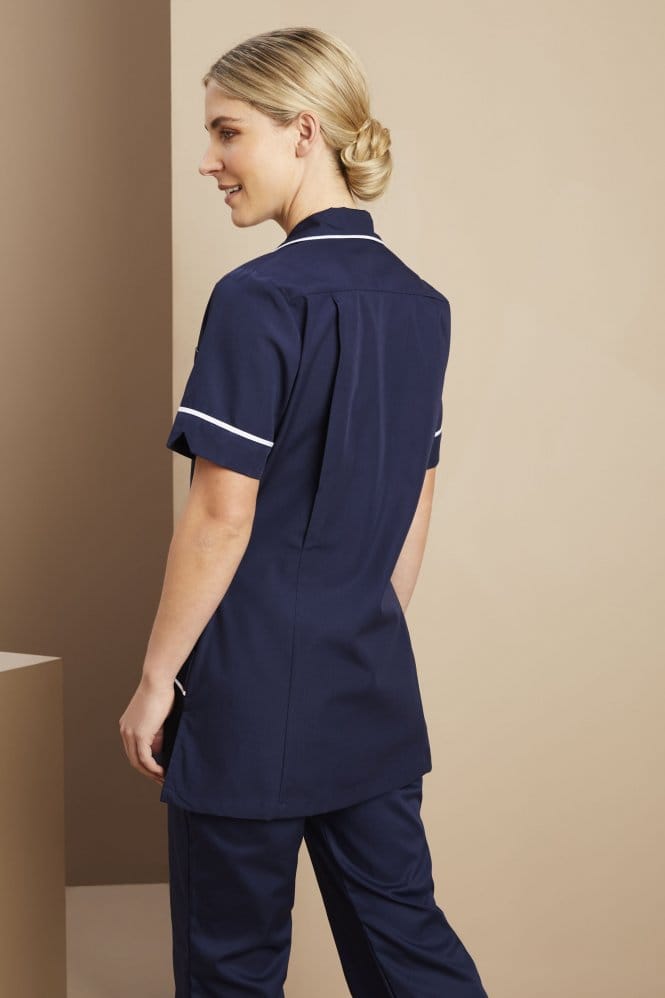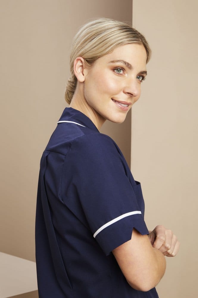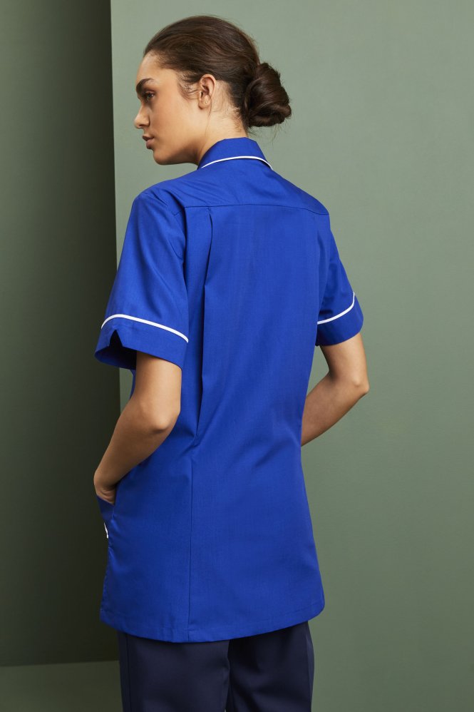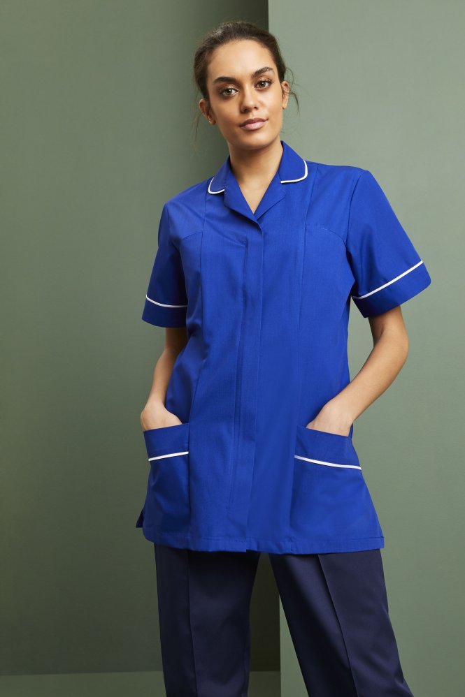 Fabriquée à partir d'un tissu léger en polyester et coton mélangés, notre tunique de soins de santé à col classique léger en bleu hospitalier est parfaite pour un environnement médical. Gardez de petits objets et des outils à portée de main tout au long de votre quart de travail dans les deux poches intérieures et la poche poitrine étanche. Conforme au contrôle des infections, ce haut est conçu pour un environnement médical, laver à 60 ° C et repasser si nécessaire.