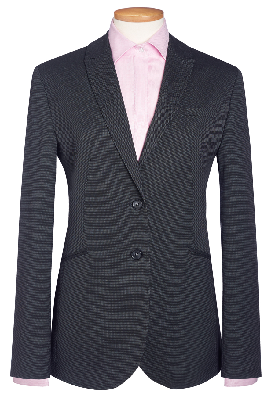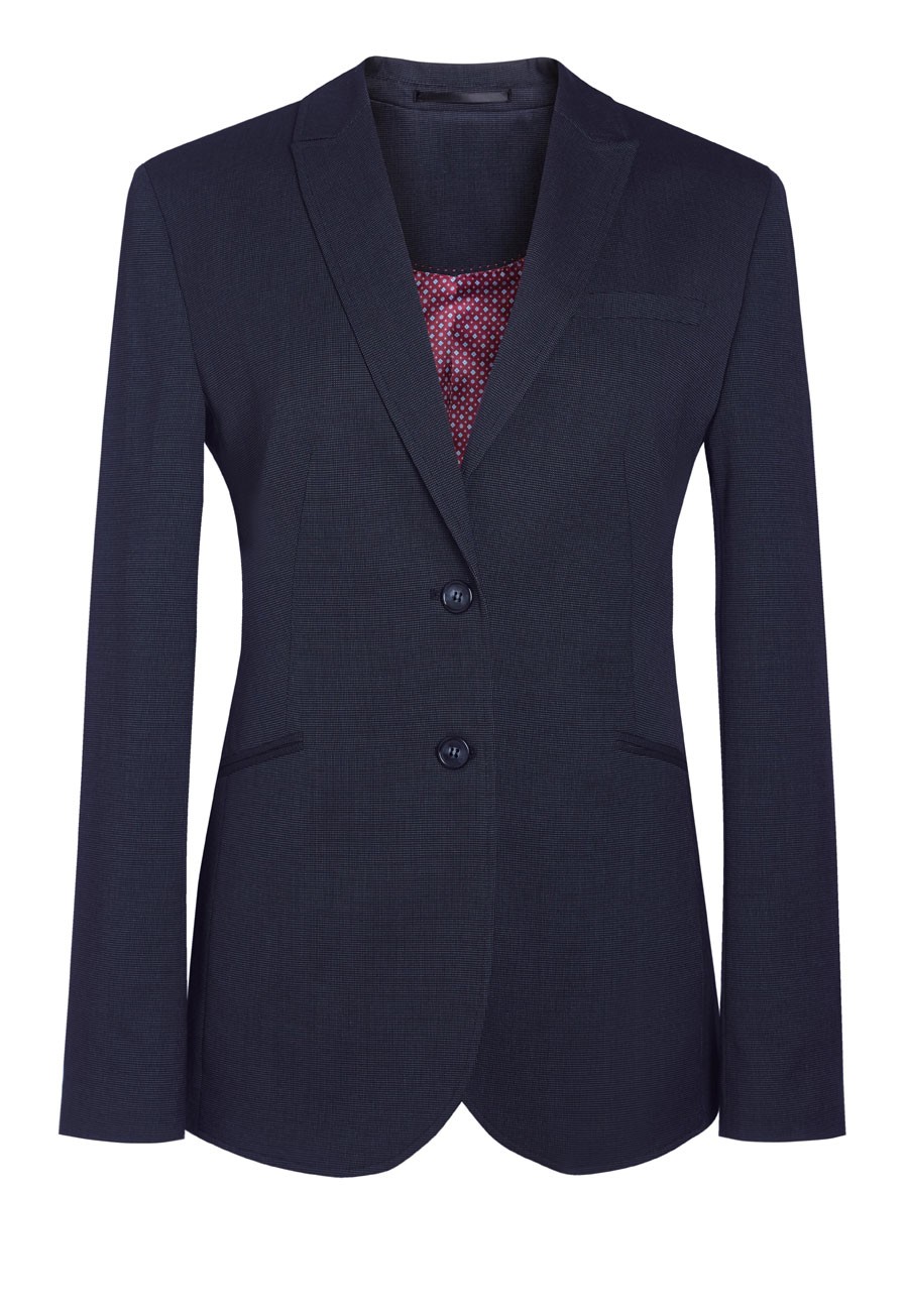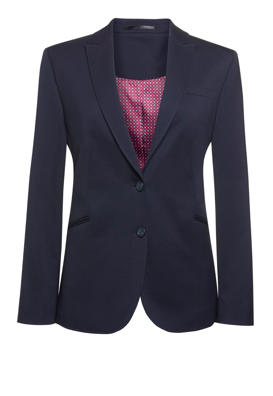 Coupe ajustée, 2 boutons, revers en pointe, fente centrale Longueur milieu du dos à la taille 12R = 63 cm Lavable en machine