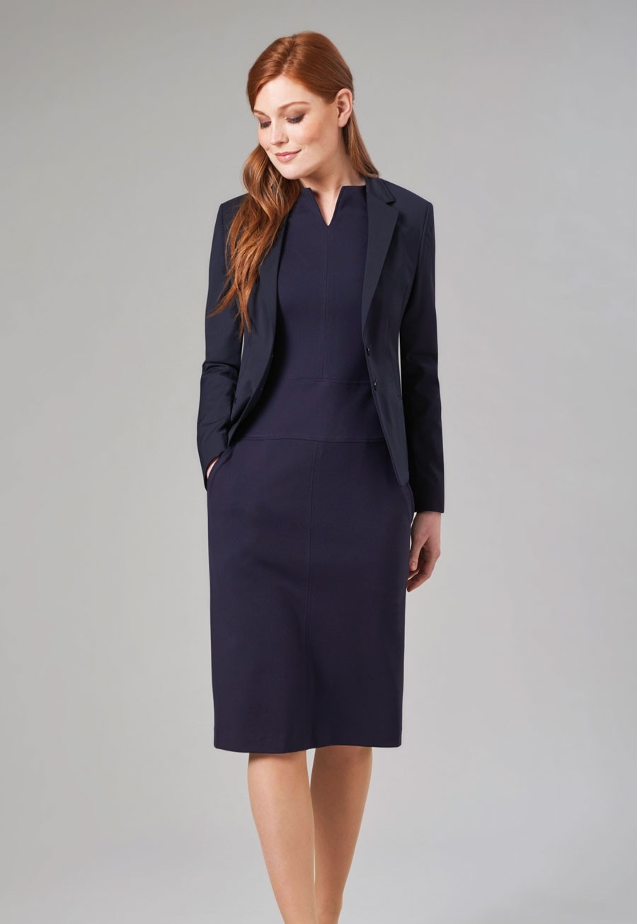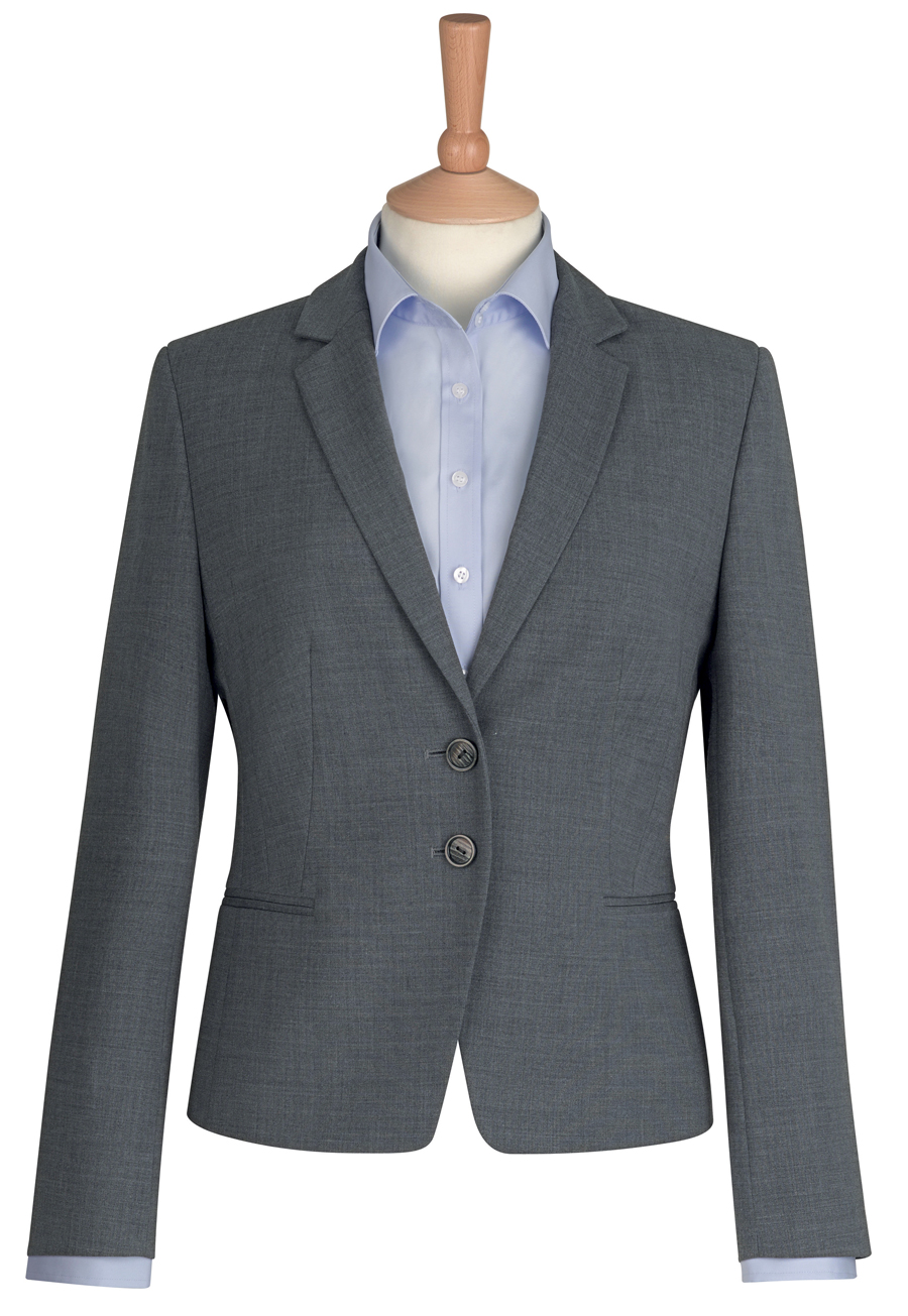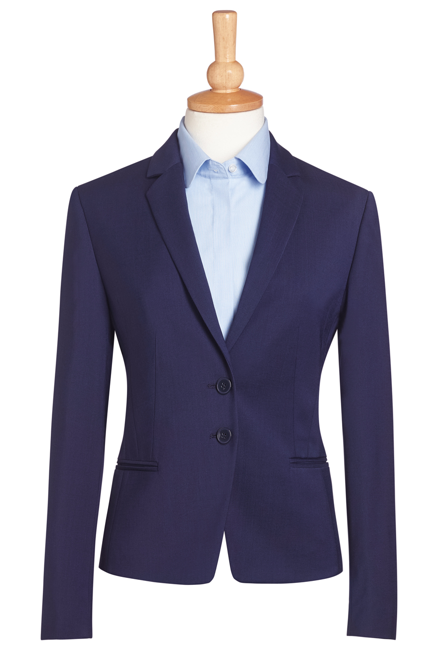 Veste courte coupe slim 2 boutons avec pan coupé, revers cranté fin, pinces poitrine devant, poches passepoilées, dos uni, panneaux dos ajustés, 1 poche intérieure