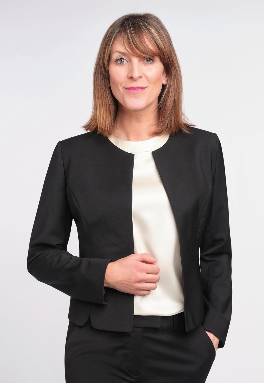Coupe ajustée, style sans col avec fentes incurvées, 2 poches intérieures passepoilées, coutures avant/arrière incurvées