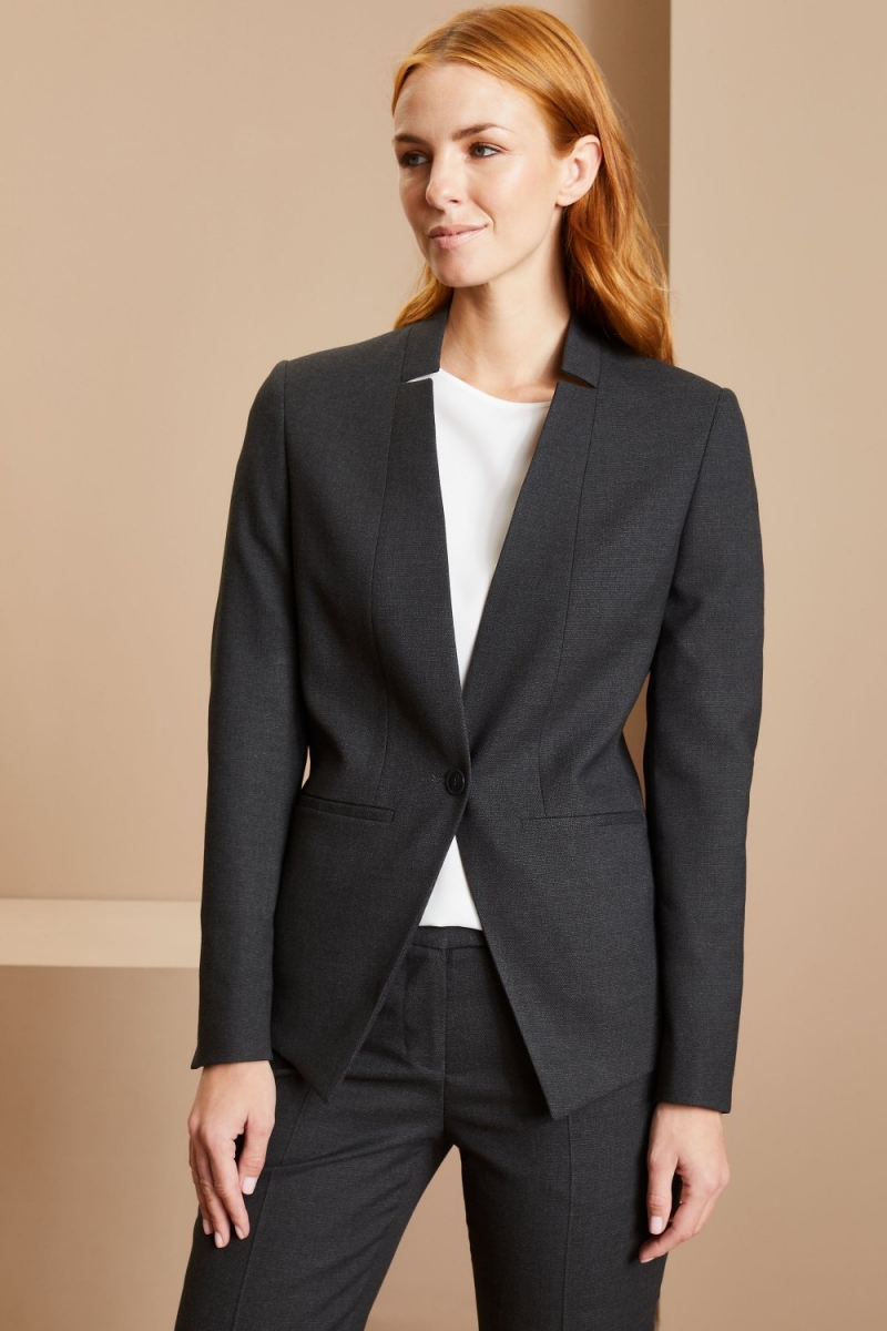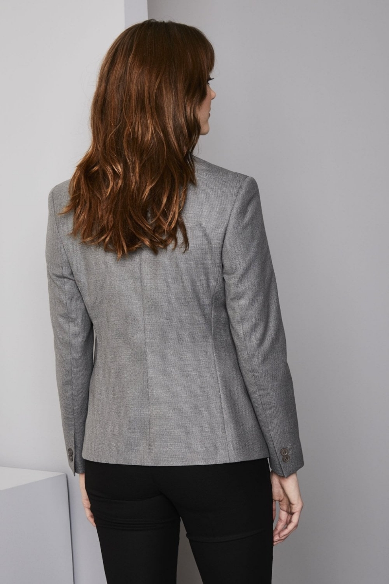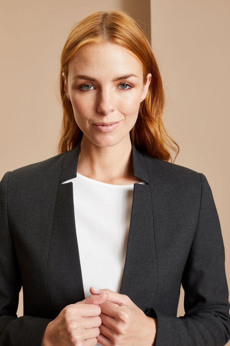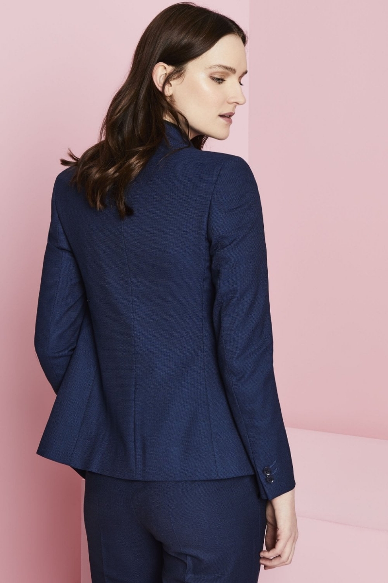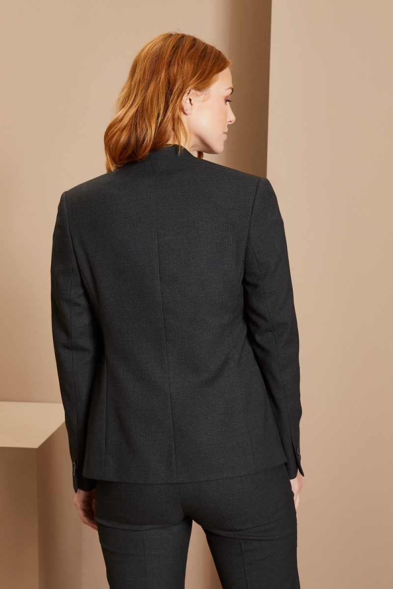 Fabriqué à partir de notre dernier tissu qui combine 66% de polyester, 33% de viscose, 1% de lycra avec teflon et tige résistant aux taches. Le cou de l'encoche de style contemporain et la fermeture à bouton-pression donnent une touche moderne à cette veste classique, créant une silhouette chic en combinaison avec la jupe, la robe ou le pantalon de coordination.