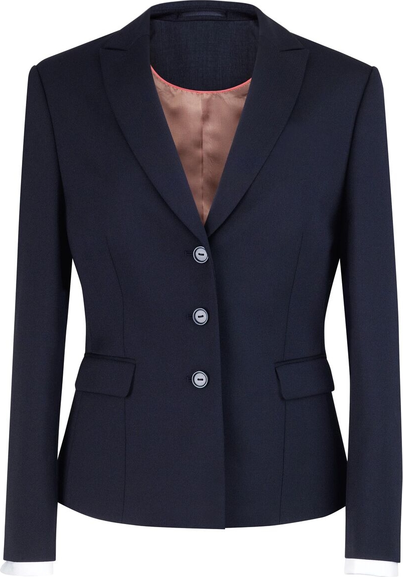 3 button Coupe ajustée jacket, Revers en pointe, 1 poche intérieure, tailored back panels, fente au centre dos